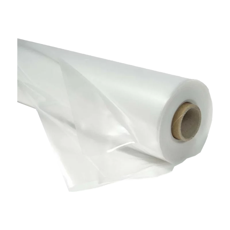 Transparent folie tillverkad av polyeten för som tillfällig täckning och för skydd av golv, tak och väggar.