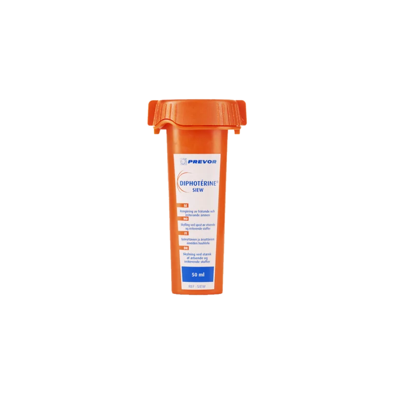 Diphoterin ist eine einzigartige Spülflüssigkeit für die Erste Hilfe, die Säuren und Basen wie Salzsäure, Schwefelsäure und Natriumhydroxid (Lauge) schnell und wirksam neutralisiert. Diphoterin ist auch gegen Lösungsmittel, Oxidationsmittel und Chelatoren wirksam und wurde auf seine Wirksamkeit gegen über 1.000 Chemikalien getestet.