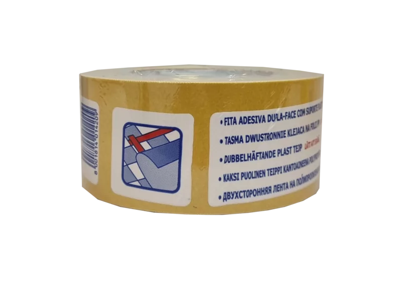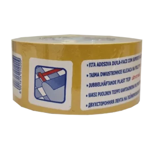 Ein doppelseitiges Klebeband mit Kunststofffolie zur Befestigung von z.B. Teppichen, Milchkarton und Schutzkunststoff während der Dekontamination. Der Klebstoff des Bandes besteht aus synthetischem Kautschuk mit hoher Haftung auf beiden Seiten. Das Band hat eine hohe Erweiterbarkeit und Formbarkeit und ist daher besonders einfach zu bedienen.