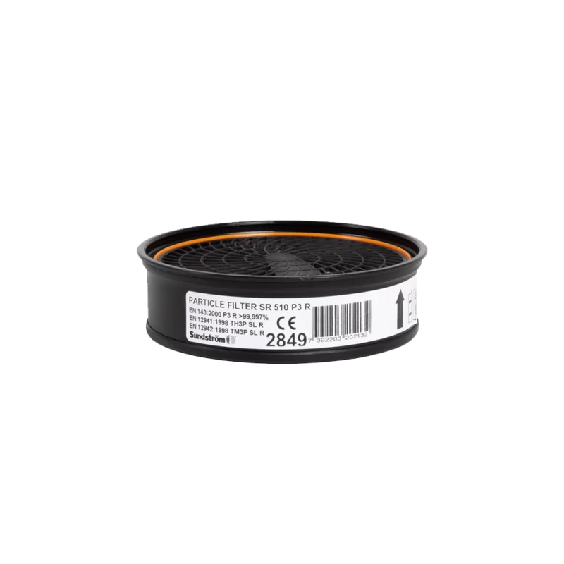 Der Partikelfilter SR 510 ist für den Einsatz in Sundström Halbmasken, Vollmasken und Gebläsen SR 500/ SR 500 EX/SR 700 bestimmt. Der Filter ist vom Typ P3 R* und schützt vor allen Arten von Partikelbelastung. Der Partikelfilter kann leicht mit Gasfiltern aus dem Sundström-Sortiment kombiniert werden, um Schutz vor Gasen und Dämpfen zu erhalten, z. B. beim Spritzlackieren. Partikelfilter sollten mit Vorfiltern SR 221 kombiniert werden, was die Lebensdauer erhöht. Der Ventilator SR 500/SR 500 EX sollte immer mit zwei Partikelfiltern oder zwei Kombinationsfiltern, bestehend aus einem Gas- und einem Partikelfilter, verwendet werden.