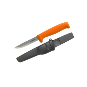 Knife developed and adapted to the needs of craftsmen made of Japanese knife steel. Unique feature of fastening the holster around the button on the workwear prevents it from loosening, while being easy to remove. The knife blade is made of 2.5 mm carbon steel hardened to 58-60 HRC.